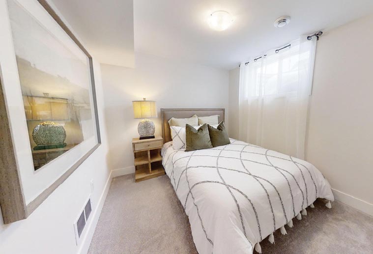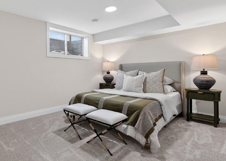The Graystone Homes Lotus suite in their Lotus Towns development includes a large principal bedroom with natural light coming through an egress window set within a deep window well.