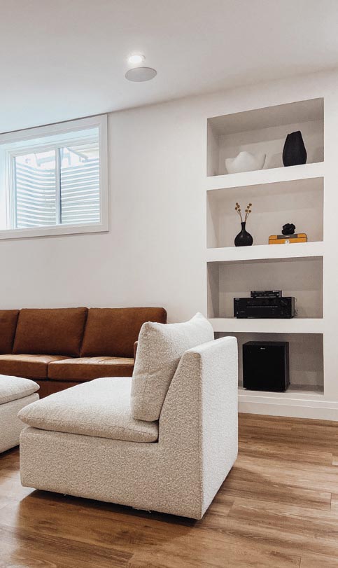 “If you have a 1,200-square foot house, you might get 1,000 more in the basement, doubling the living space,” says Hassall. He hears a lot of requests for separate areas for kids and adults “so they’re not on top of each other — somewhere to go, somewhere to have their own space. That’s the biggest motivator. People want a place where they can do different things, have privacy, quiet.”