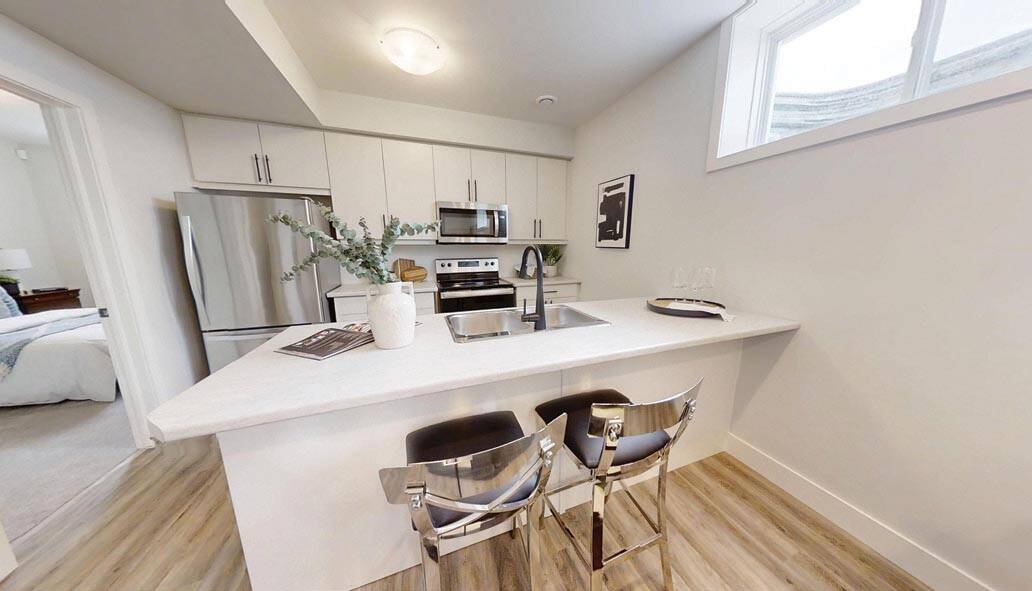 “The affordability also increases the value of the home,” says Stimac. “I like it because it hits a lot of buttons. A single person could live on the lower level and rent the upstairs to a family and become mortgage-free. They can move upstairs and rent the basement for supplemental income. Retirees can live there or owners could put their parents there.”