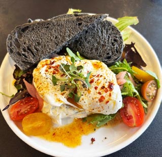 The Ashbourne’s Turkish Eggs, a poached egg on garlicky yogurt served with toasted charcoal sourdough.