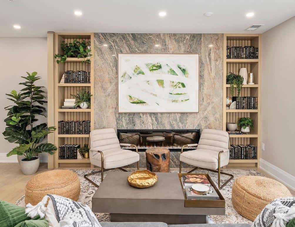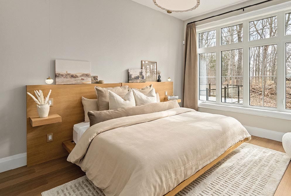 There is also a desire for harmony between inside and outdoors. Integrating the two spaces and using natural materials, called biophilic design, is gaining in popularity. It can be as simple as using softer tones, such as sage green and earthy neutrals, adding wood and stone elements, or increasing the size of windows.