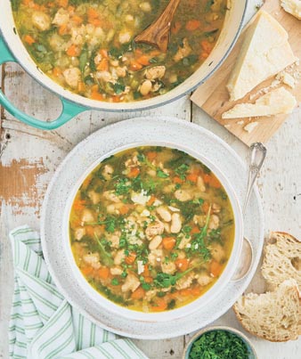 And, if you are not already saving the rinds from your blocks of Parmesan, now is the time to start. Having an available rind will add subtle richness to soups like this.