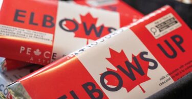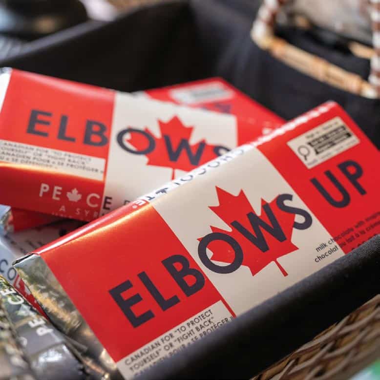 “As soon as we started selling these bars, dozens of people purchased them. Some would buy 15 at a time,” Weber says. The bar wrappers celebrate different occasions such as birthdays and anniversaries, and some wrappers promote the trend of buying Canadian, with “Go Canada Go” and “Elbows Up.”