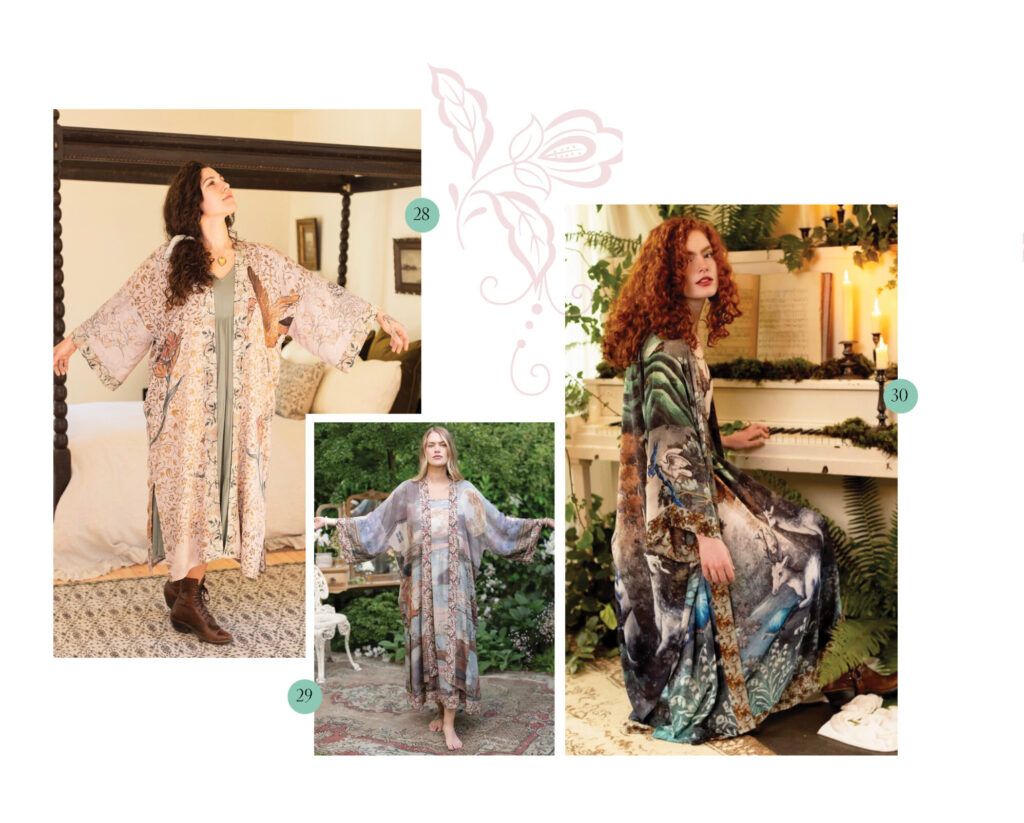 28 • 29 • 30 Vintage-style duster robes in soft rayon prints.