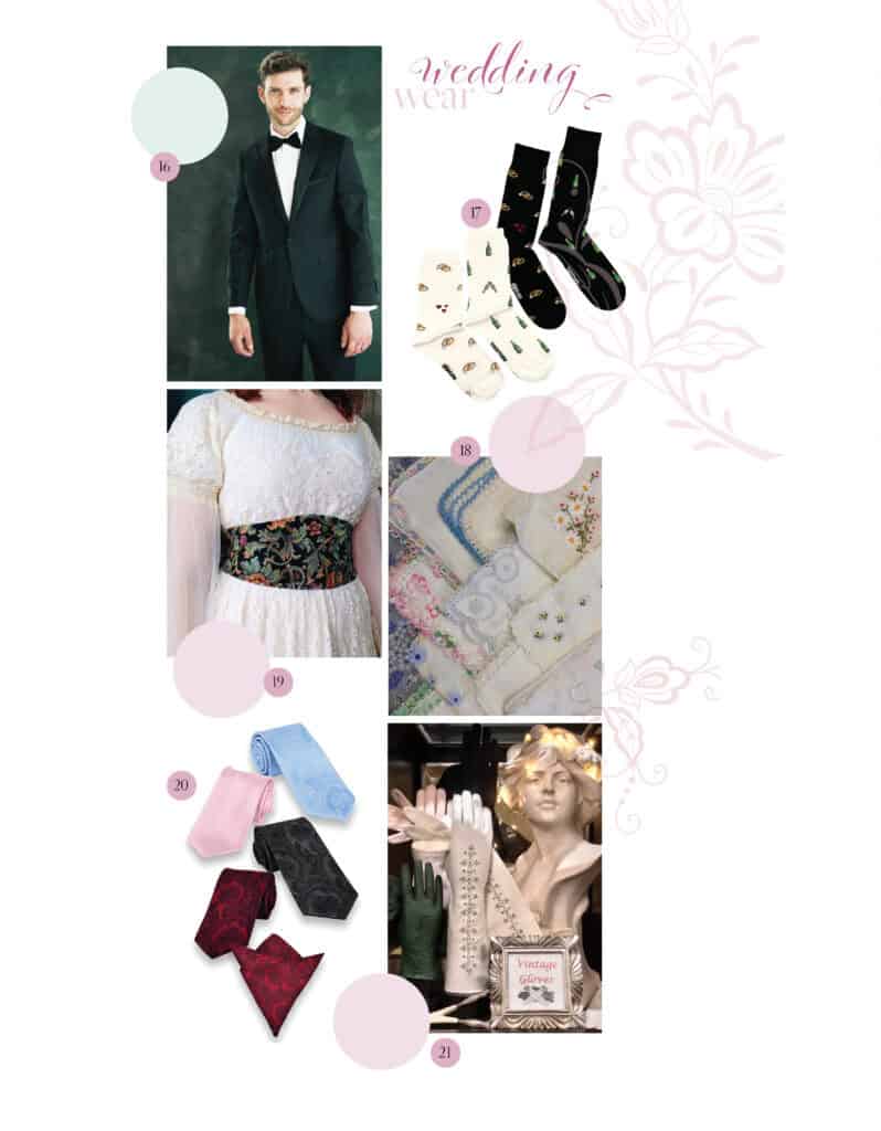 20 The Bridal Collection from Eldorado. 100% silk, available in regular ties, bow ties and pocket squares in a variety of colours and designs: plain, tone-on-tone neats and paisley jacquard.