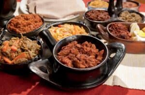 London has many outstanding immigrant-owned restaurants serving excellent global cuisine. T.G. Haile of TG’s Addis Ababa Restaurant, one of my favourites, remains a skilful chef at the top of her game. Her signature dishes from the repertoire of Ethiopian cookery comprise permutations of sweet, bitter, sour, salty, hot, and fragrant. Refined flavour contrasts are the hallmark of T.G.’s cooking.